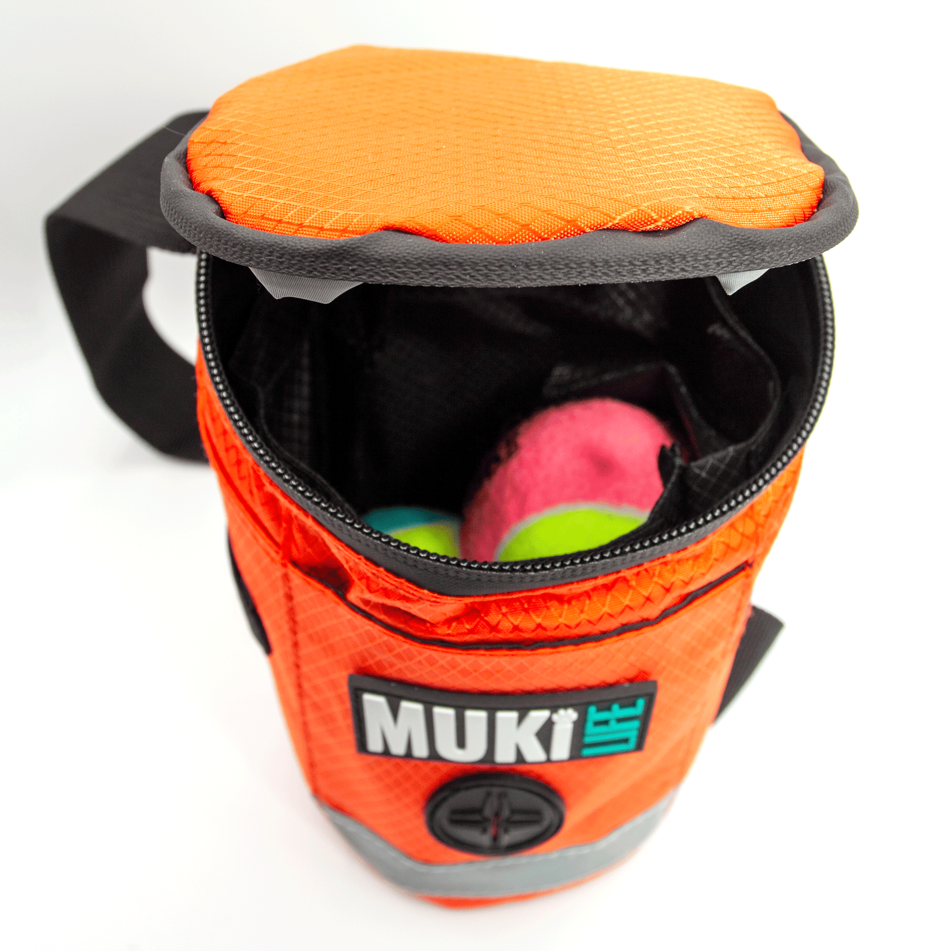 The MUKi Trek Pouch has a removable easy to clean inner lining, a dog bag dispenser, extra pockets for sanitiser or any other items you need, and an adjustable stap which can be worn around the waist or over the shoulder.