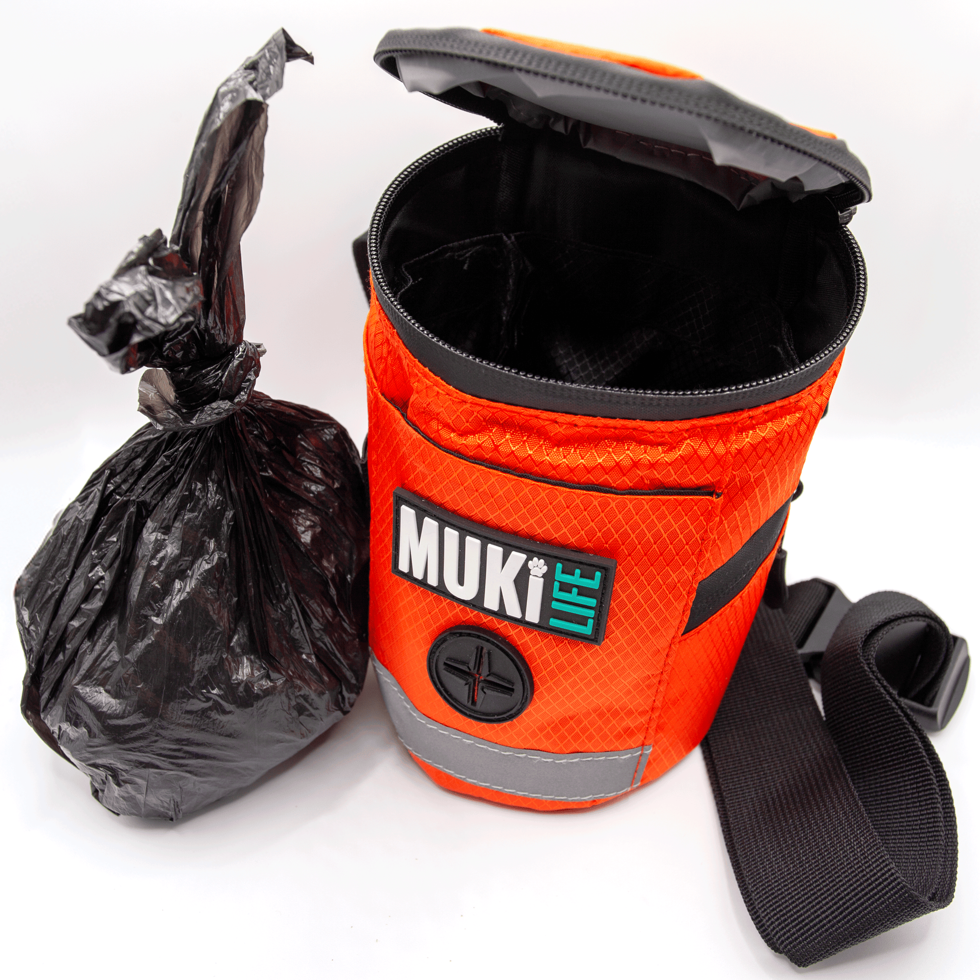 Take walking your dog to the next level with the MUKi Trek Pouch. The portable dog bin lets you clean up after your dog easily and store the mess out of sight (and out of smell) until you reach a bin. No more swinging poo bags around until the end of your walk!